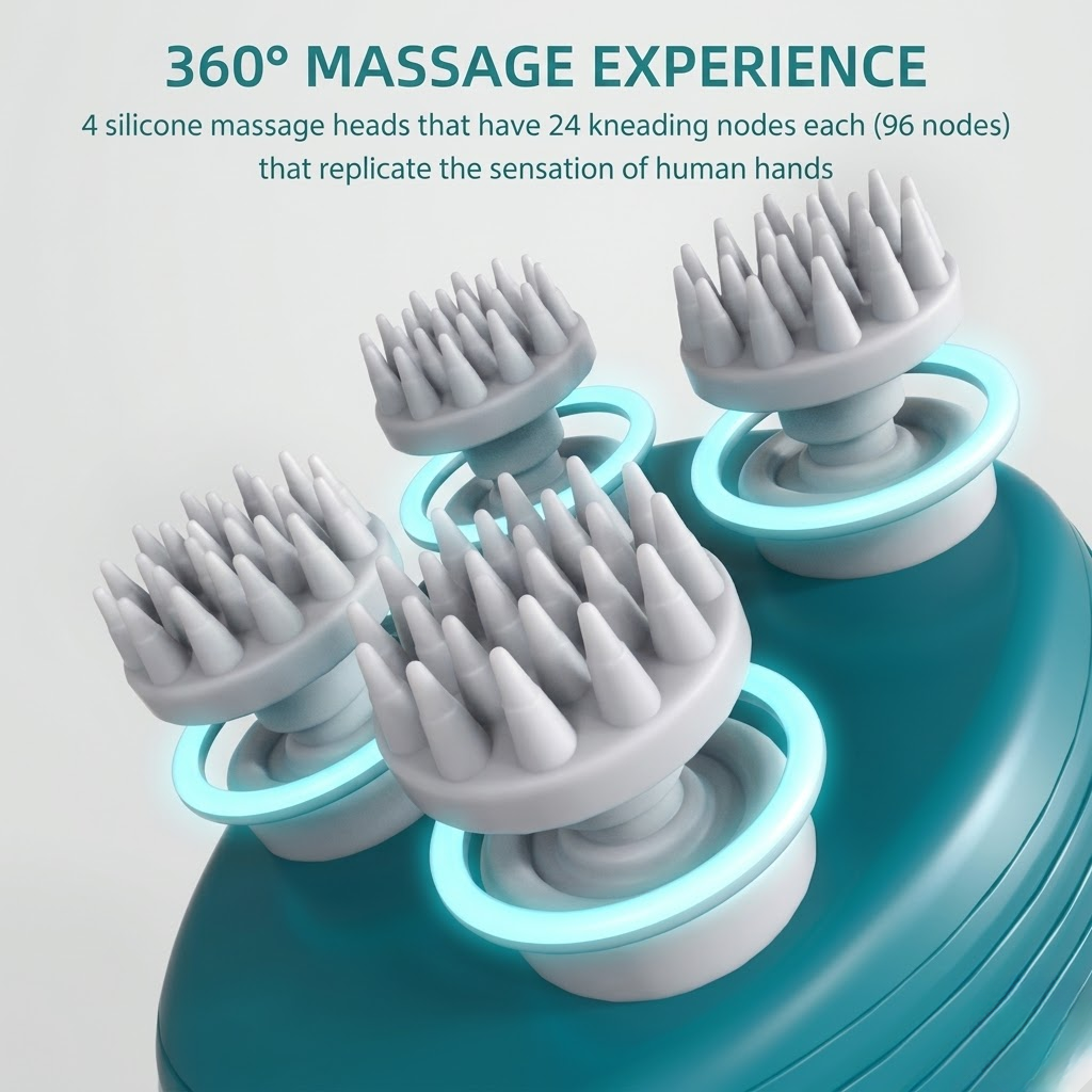Experience deep tissue relief with four flexible heads simulating manual massage.